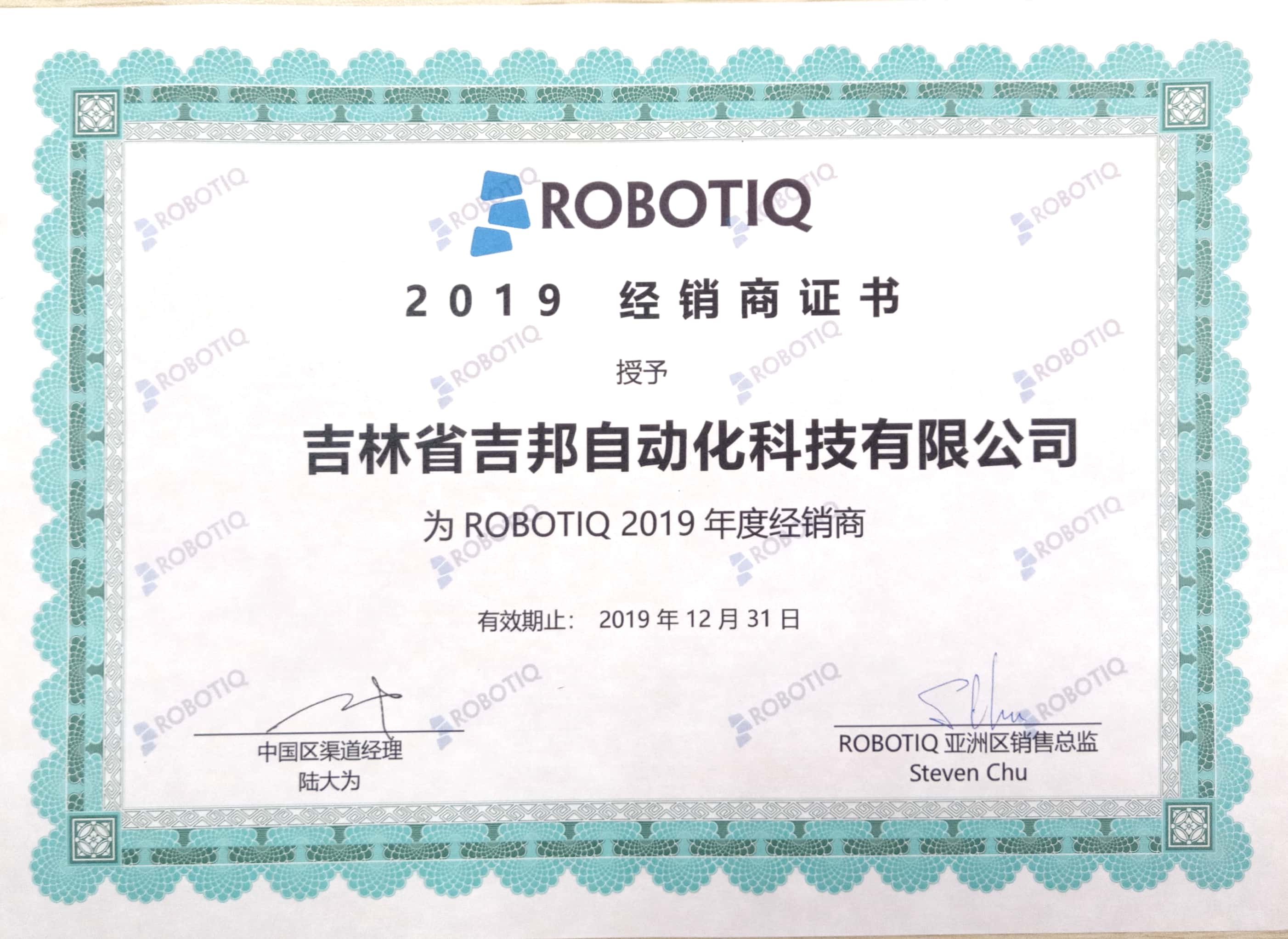 ROBOTIQ代理證書(shū)